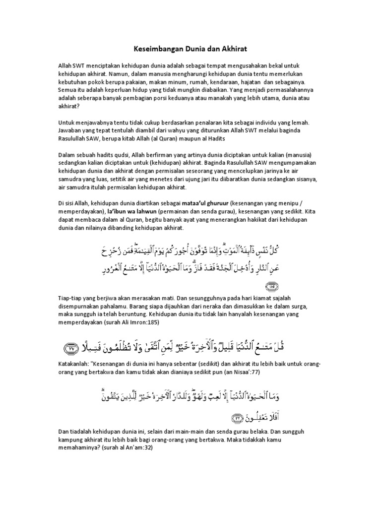 Keseimbangan Dunia Dan Akhirat Pdf Document