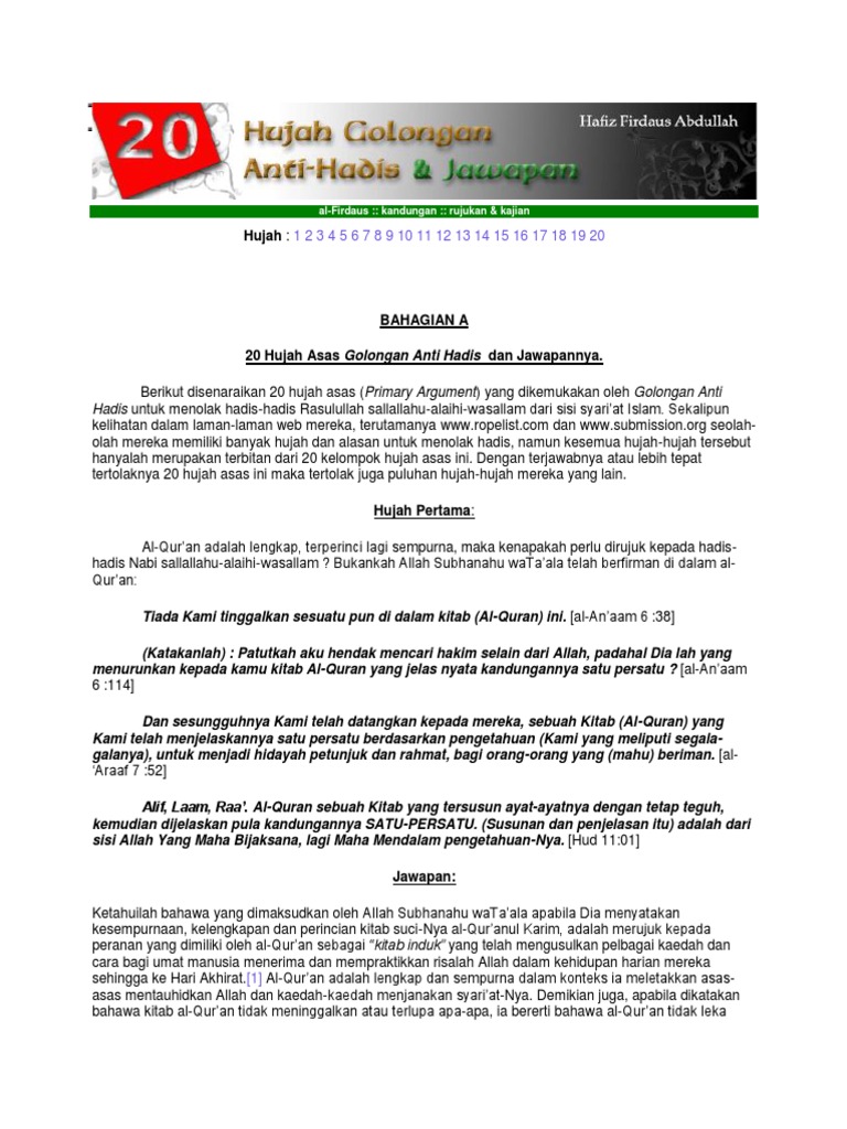 | Judul Surah: Hujah Anti Hadis Dan Jawabannya1 |